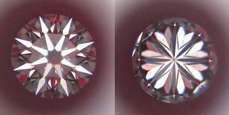 完美的八心八箭是不管正面的八支剑还是底部的八心都是大小都是完美对称的,只要是有一点差别都会影响钻石的品质。不管是多大的钻石,几十分的钻石还是几克拉的钻石,我们用肉眼是看不到所谓的八心八箭效果,需要钻也的仪器在放大十倍的情况下方可见到。